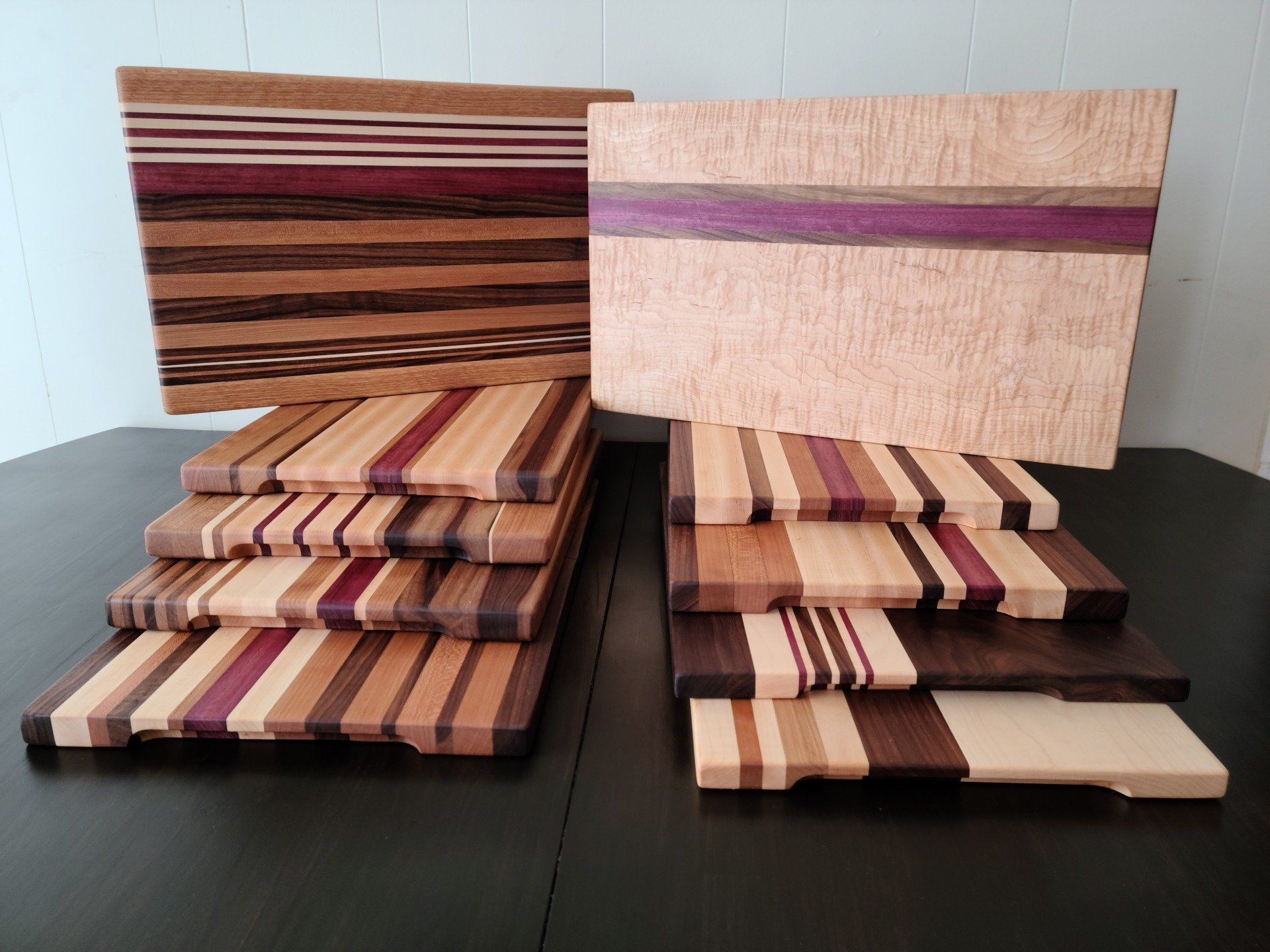 We make use of exotic hardwoods such as hard maple, cherry, purpleheart, and black walnut. Numerous other exotic woods can be used from bloodwood, yellow heart, ebony, bocote, zebrawood, wenge, and many more.